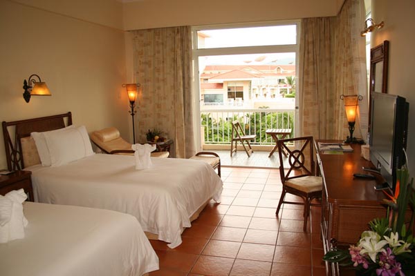标准园景房,面积27平方米,楼层1-2层,无阳台,大床(1.8*2米),双床(1.2*2米),部分房间有浴缸,免费宽带