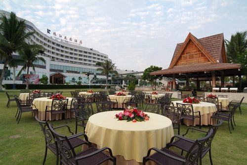 三亚珠江花园酒店地处三亚市风景秀丽的大东海旅游区,位于大东海的中心地带,正面即是绵长洁白的沙滩和蔚蓝的海水,从沙滩到酒店仅几步之遥,属于典型的商务度假型酒店。距离三亚市区仅需10分钟车程,距离三亚机场仅需20分钟车程。三亚珠江花园酒店的建筑形体呈波浪状,气势雄伟、浪漫,具有浓郁的热带风格,与周边的环境溶为一体,是建筑、艺术与自然的完美结合。酒店各种不同风格的客房中,绝大多数为带有观海阳台的海景房,这些房间都有开阔的观海视野,客人闲卧床上就可将海景尽收眼底。700平方米金碧辉煌的大堂,正面镶嵌15米金箔壁画;花团锦簇的空中花园及独一无二的入海通道,构成了大东海亮丽的风景线。除了良好的硬件条件,珠江花园的服务与管理更为业内人士所称道。在每年三亚各大酒店参加的服务技能大赛中,屡获冠军。2000年珠江花园作为三亚市首家通过ISO-9002国际质量认证体系的酒店,更成为三亚旅游界的骄傲和典范。2001年被国际金钥匙组织批准成为其成员,是三亚市第一家获此殊荣的酒店,标志了国际饭店业的极品服务落户三亚。2003年三亚各大酒店参加服务技能比赛中我店囊括全部单项冠军以及团体总冠军,被誉为酒店服务“梦之队”。2007年又攀高峰,取得服务技能大赛五连冠。由于我酒店的出色管理和完美服务,在第53届世界小姐选美大赛期间被总决赛组委会接待中心指定为“特约服务单位”。