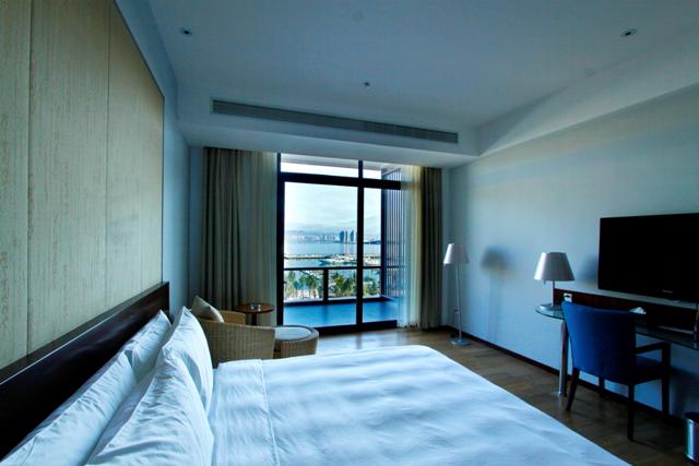 港湾海景房(180度观海) 面积:31-49 平方米 楼层:3-5层 海景:180 度,离海30米 阳台:有,6㎡ 大床:2*2米 双标:1.1*2米*2张 浴缸:无 宽带:免费使用