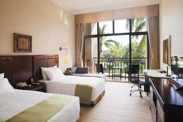 豪华泳池房 面积:46平米 楼层:1-2层 海景:无 阳台 有 大床:2*2米 双标:1.2*2米 浴缸:部分房间有 宽带:免费