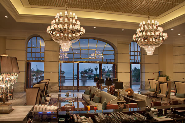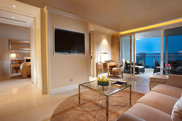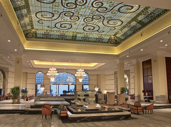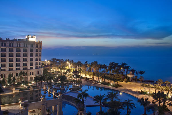 三亚财富海湾大酒店位于风景优美的三亚湾临海一线黄金海景地段,酒店紧邻规划中的三亚新城,北邻三亚市凤凰国际机场约4公里,西距天涯海角风景度假区约8公里,南与三亚湾西岛——玳瑁岛隔海相望,并与三亚市机场、旅游区共同构成大会议旅游度假圈,是理想的度假休闲、商务会议之地。酒店占地约5.5万平米,建筑面积逾9万平米,共391套豪华酒店房(含顶级总统套),83套族系公馆, 3套顶级独栋别墅。酒店结合三亚当地气候和风俗,遵循财富联合集团“高端精品”产品定位,邀请国际著名设计公司运用国际上最先进的设计理念,按照白金五星级酒店标准兴建,具有浓厚的热带风情。景观设计采用了法国现代古典主义风格,突出洛可可的华丽与奢华。酒店特设三亚罕见的2000平米豪华迎宾大堂,步入其中便能立刻感觉到如盛宴现场般的奢华感受。酒店拥有高档中、西餐厅,韩式料理餐厅,及提供各式美酒、鲜榨果汁、茶点和健康小吃的特色酒吧、大堂吧,让宾客充分感受热带的氛围;完善的酒店独享沙滩、健身娱乐设施、及酒店SPA所提供的泰式等各式惬意自在的按摩,将使您充分享受所有的三亚时光,难以忘怀。同时,三亚顶级的会议厅,及专业团队将为您提供一站式会务服务。会议厅内部设施齐全,功能完善,是举办商务会议的理想之选。酒店还拥有可容纳380人的豪华宴会厅—国王宴会厅,是为财富领袖量身定制的专属配置,无论是顶级规格的私人聚会,还是层峰汇聚的商务晚宴,都能在此得到完美呈现。