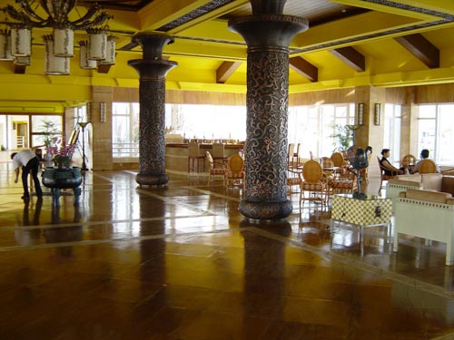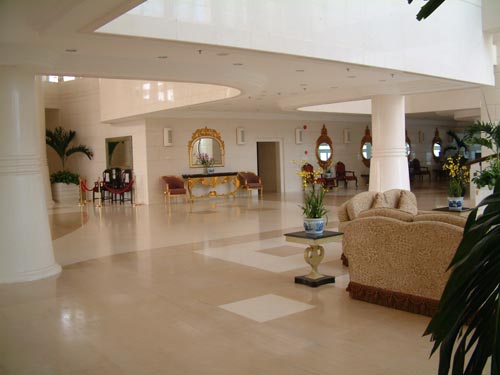 海南新国宾馆是海南航空集团和海口市政府合资兴建,由海航酒店(集团)有限公司管理,以接待国家元首,国宾,各类国际国内组织主要领导人,省市政界重要贵宾和国际,国内工商名流为主,是集客房、餐饮、休闲娱乐、会晤场所为一体的生态化,国际化的多功能滨海温泉休闲度假酒店。 宾馆位于海口市滨海西路,映衬于蓝天碧水之间,拥有二公里长的优美海岸线,是西海岸带状公园的重要组成部分,建筑设计中西结合,装修风格古今贯通,外环境将欧式皇家花园和中式山水园林,日式山水温泉有机的融和在一起,搭配新奇的热带植物景点,形成了独特的具有海滨特色的热带风情园林。 宾馆营造了一个尽显尊容风范的世界:富丽、典雅,共拥有风格迥异的豪华海景沙龙房、豪华海景日式房、阿拉丁套房、富士山套房、梦幻套房、法兰西套房、欧式套房、浪漫蜜月套房以及气派豪华的总统套房共178间,尽显异域风情。 酒店拥有五个中式、西式、日式餐厅及海边土耳其烧烤,可为宾客提供来自世界各地的美味佳肴;精心设计的超变化全海景无柱型的会议厅、金色大厅配有国际先进的六声道同声传译系统及一流的会议设备,可同时容纳500人开会。设施齐备的海上及沙滩娱乐项目、日式乡村温泉,古埃及桑拿浴室,泰式温泉阳光SAP,电影院、网球场、两个风格不同的温泉泳池等,会让宾客置身于度假的天堂,流连忘返。