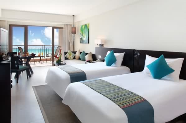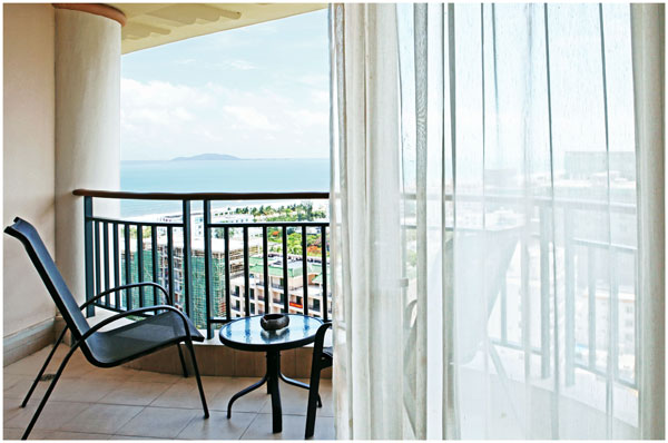 豪华海景房 面积:57-66平方米 楼层:1-14层 海景:内侧90度 阳台:有 大床 1.8*2米 双标 1.2*2米 宽带:免费使用 浴缸:有