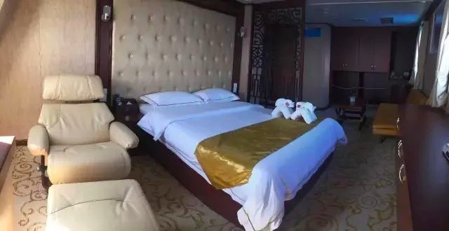 房型六:内舱六人间 ▲ 房间设施:独卫 | 电视机 |衣柜 | 茶几 | 行李架 ▲ 可入住人数:5-6人/间(内含一特价沙发铺)