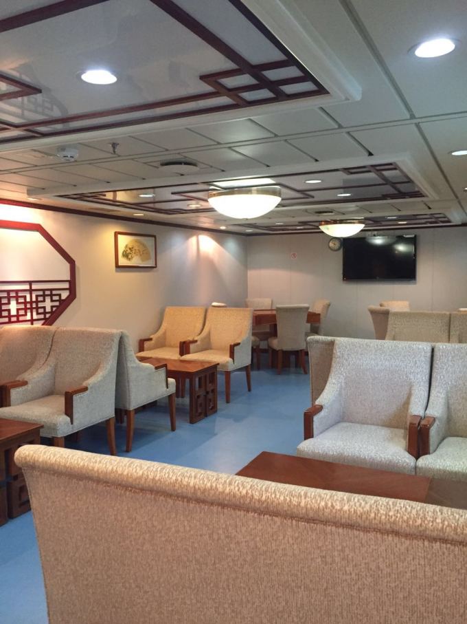 船上娱乐功能区:全富岛休闲吧,金银岛会所,珊瑚岛俱乐部,海上邮局 生活功能区:餐厅能容纳200多人同时用餐,餐厅有2个取餐台,取餐不拥挤,菜品丰富,还有超市,可以选购日常生活用品